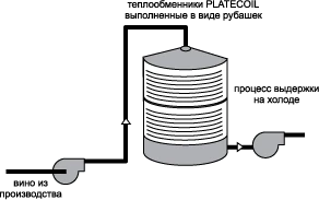 Холодная выдержка является одной из технологий улучшения качества вина и осуществляется путем понижения температуры вина до 0°C. Низкая температура ускоряет выпадение в осадок солей винной кислоты и нерастворимых сухих веществ. С помощью теплообменников PLATECOIL можно легко создавать рубашки охлаждения емкостей с вином.