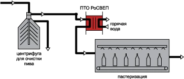Перед розливом в бутылки или банки большинство сортов пива пастеризуются для того, чтобы продлить срок его хранения. Сваренное пиво, проходя через разборный пластинчатый теплообменник РоСВЕП, нагревается до температуры, при которой пиво становится микробиологически стабильным за счет гибели бактерий.